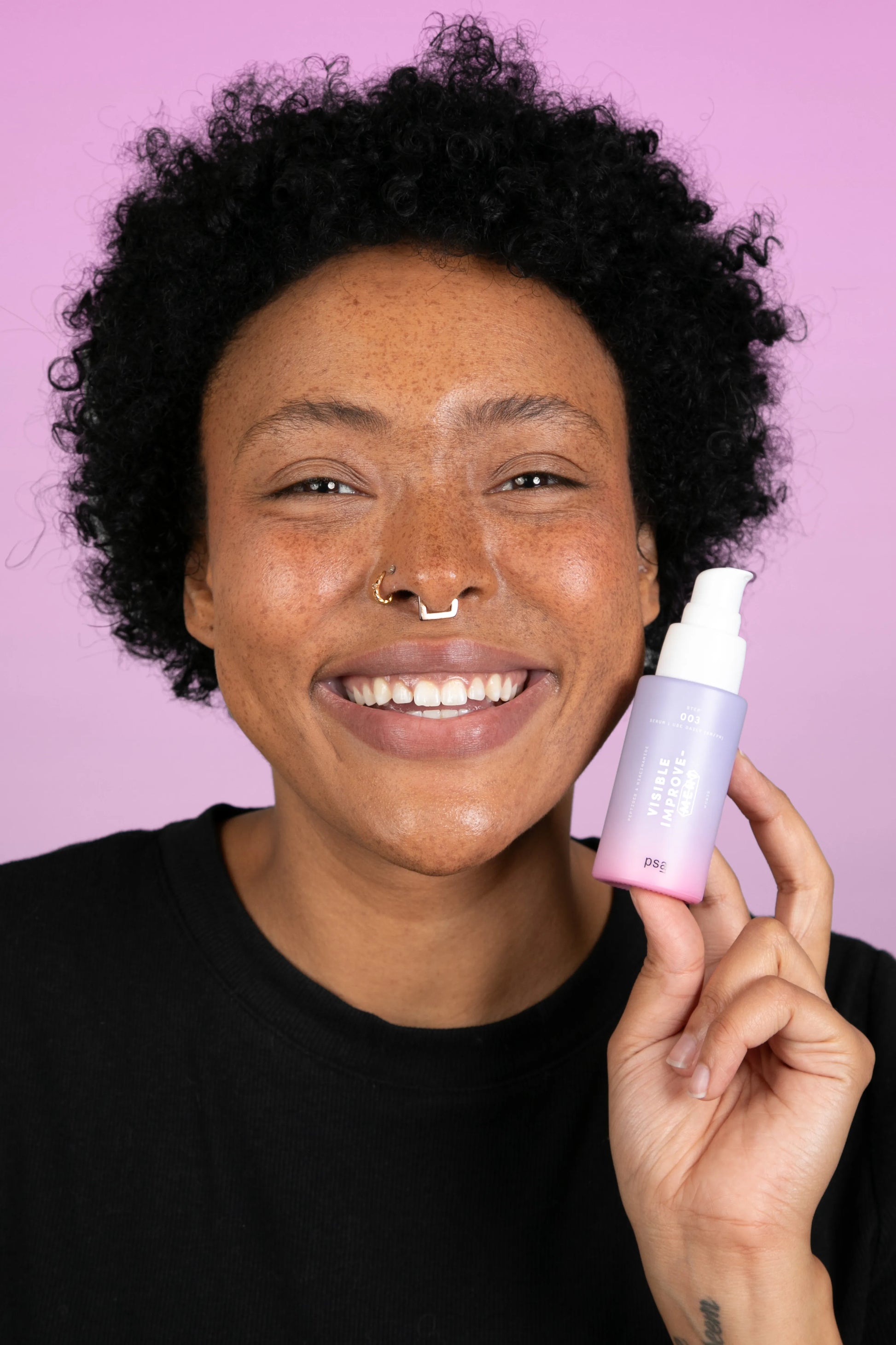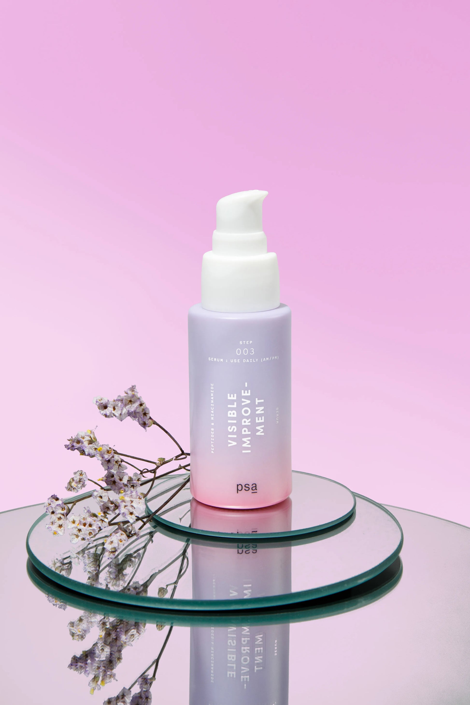 1. Apply 1-3 pumps of VISIBLE IMPROVEMENT serum over face and neck area.