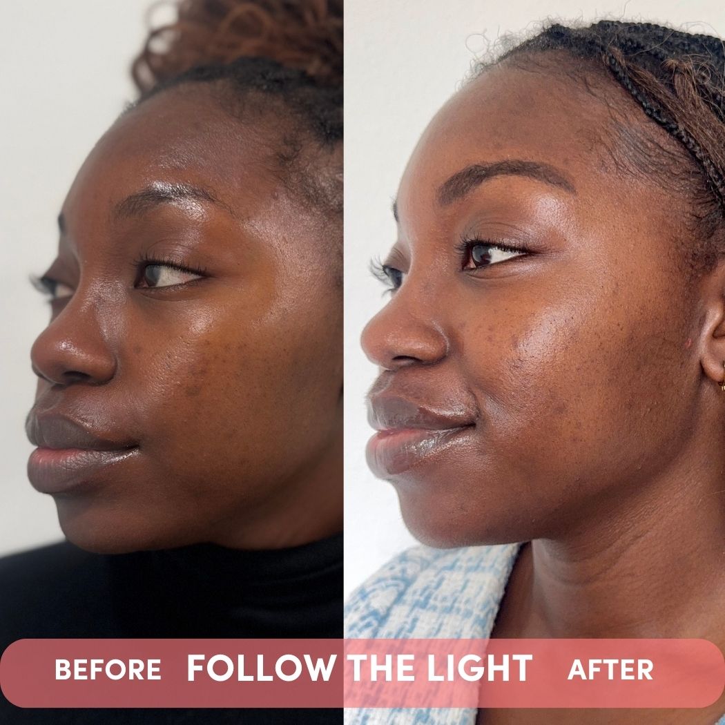 1. Use damp fingers to apply FOLLOW THE LIGHT peel and massage the product into your skin, avoiding the eye area.
