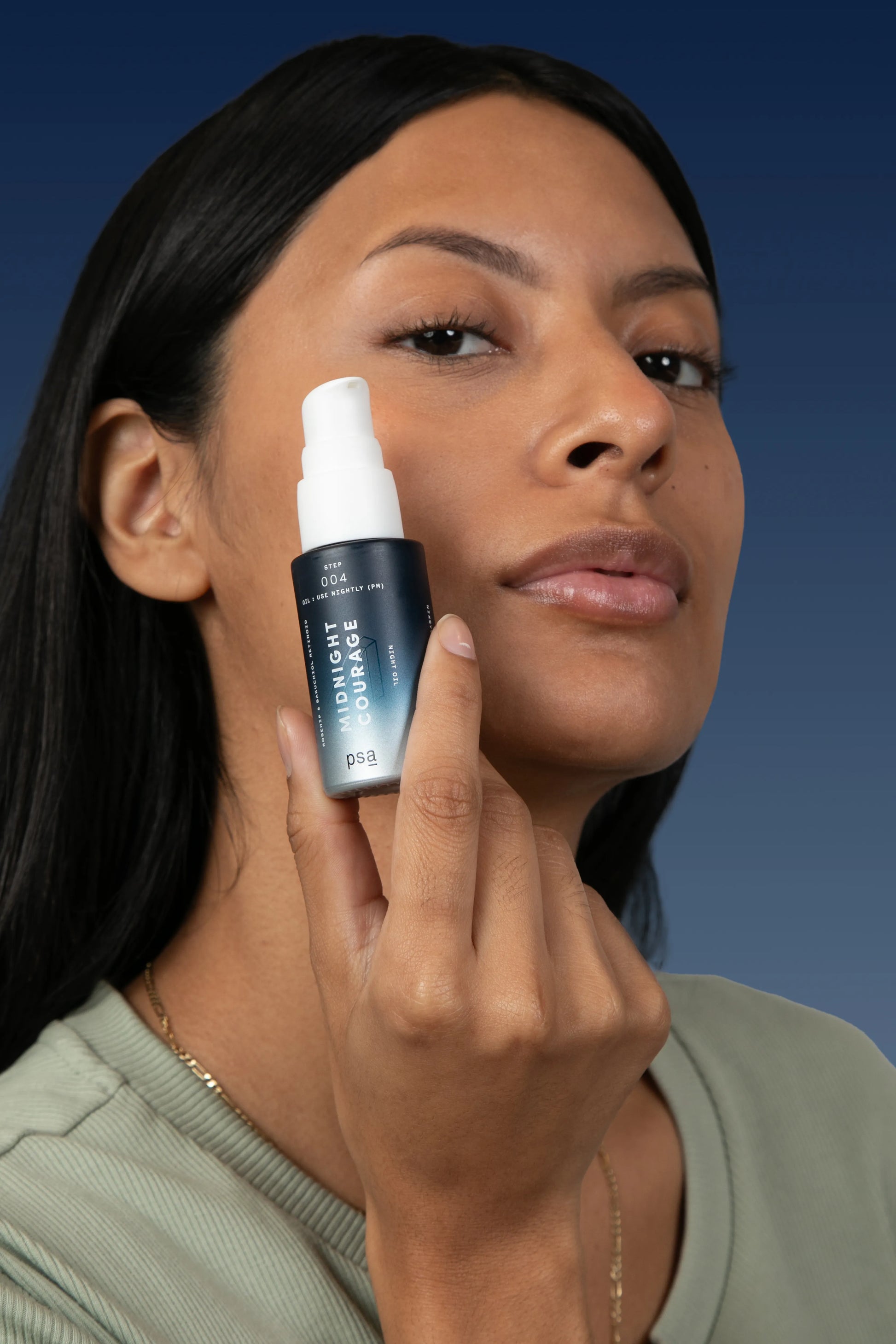 1. Use MIDNIGHT COURAGE oil as the last step of your routine.